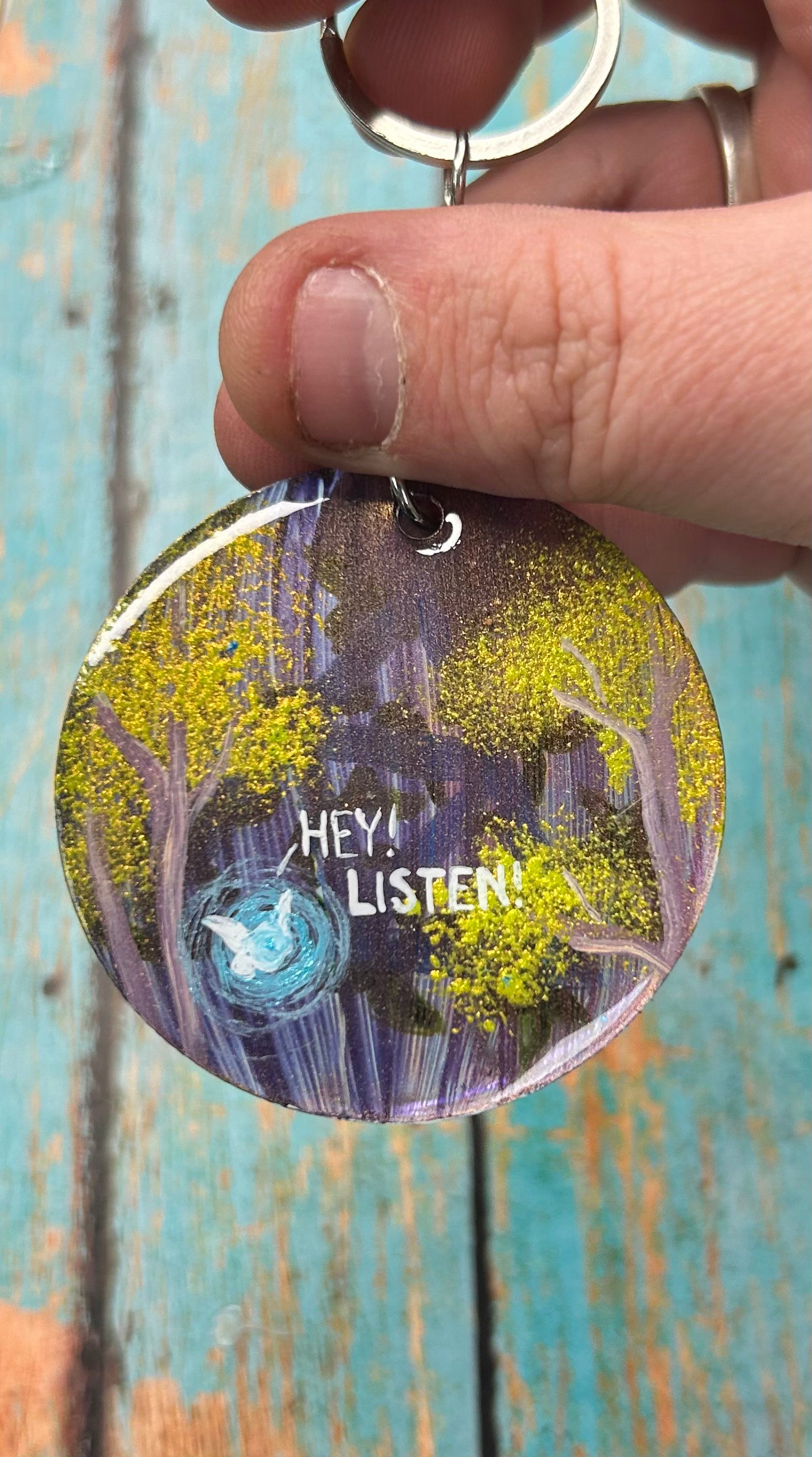 Commemorate your favorite Nintendo game with the Hey Listen keychain. Inspired by the classic Zelda franchise, this durable keychain is a must-have for any fan. Show off your love for the series and keep your keys safe.