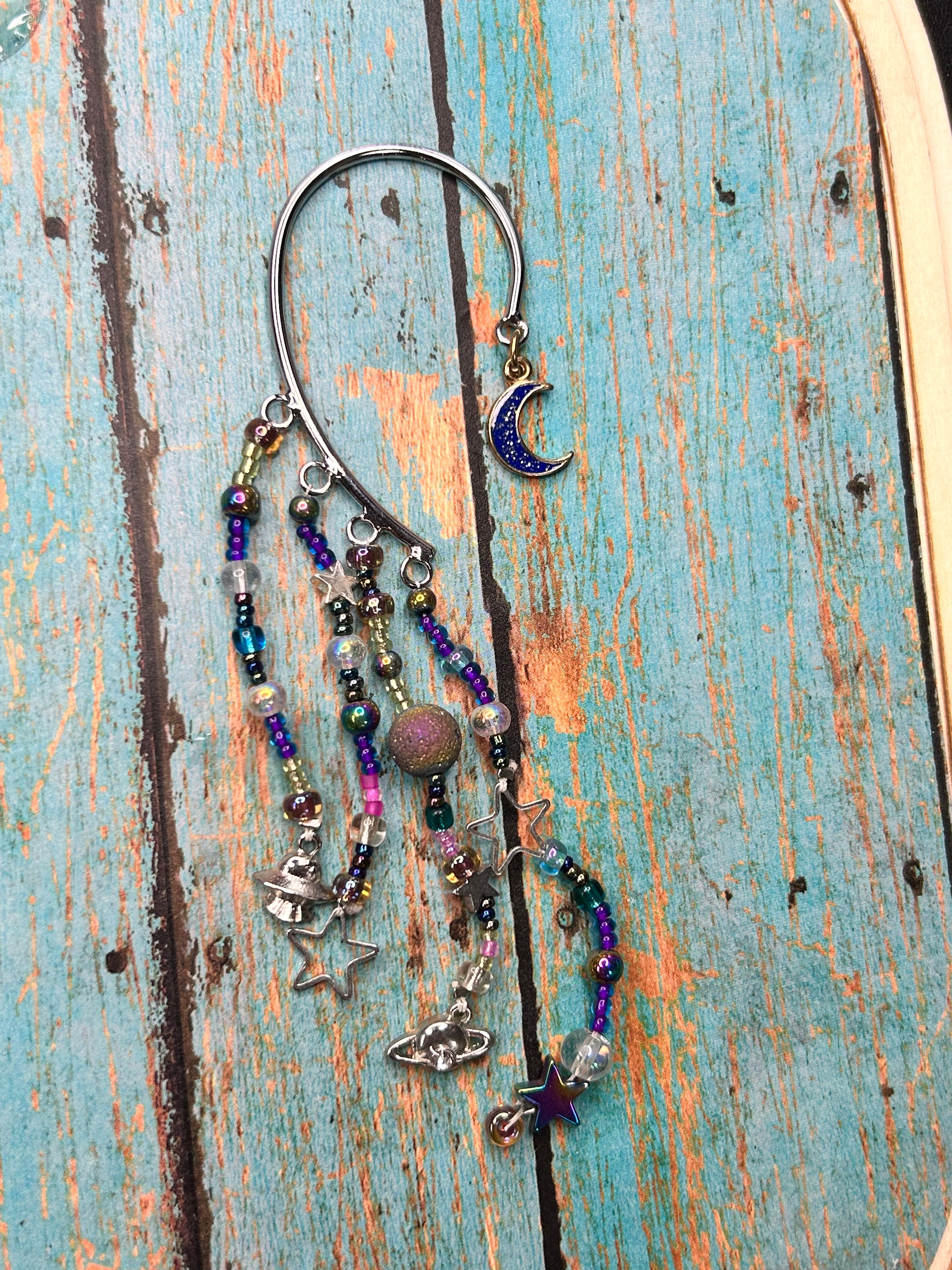 NASA isn't the only one sending people to space--you can too with our Interstellar Ear Cuff! Forget interstellar travel, just put this on and you'll be feeling like a star in no time. Its sparkly space-themed design will make sure your look isn't out of this world! Blast off in style!