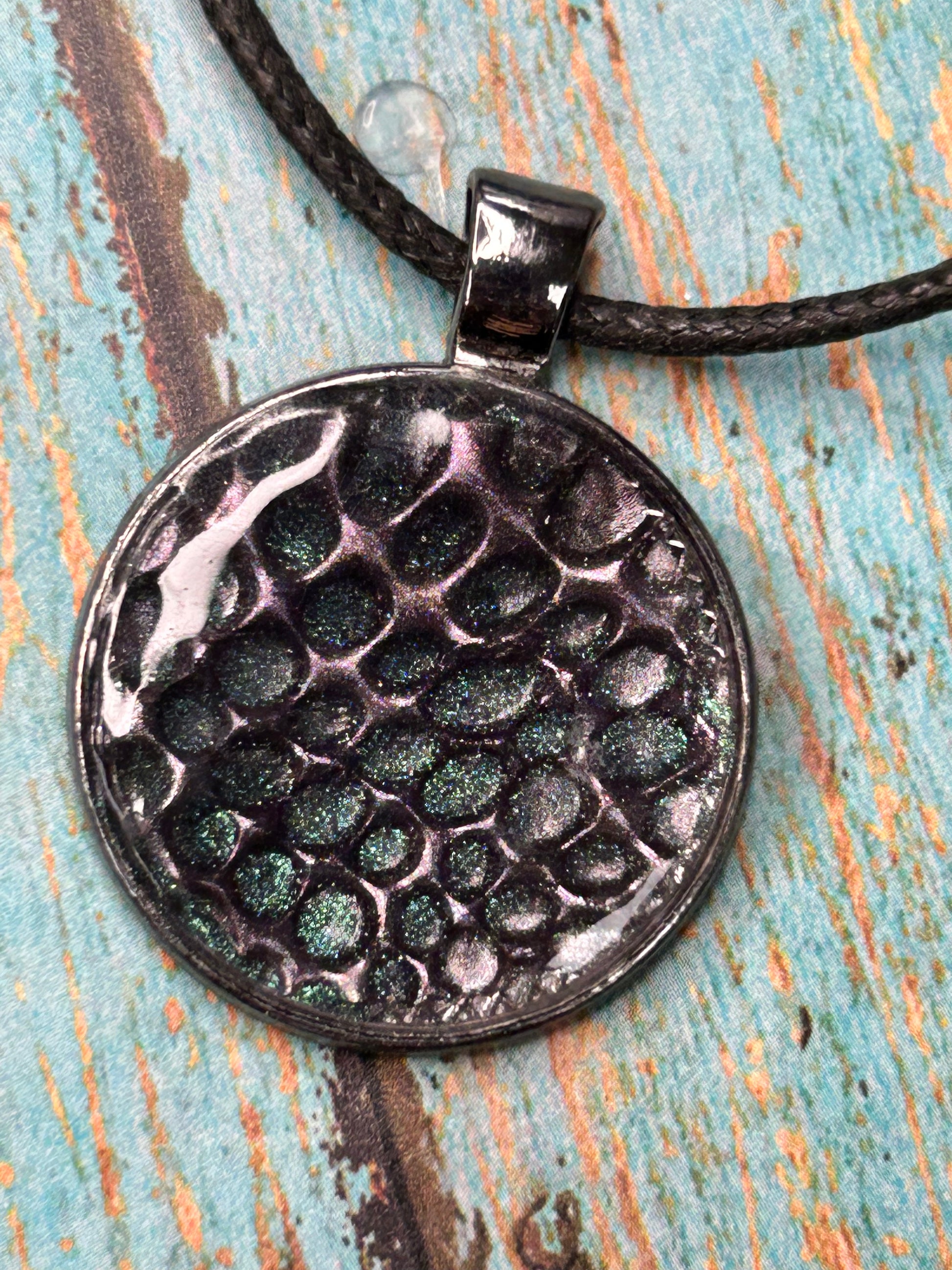 Check out this snazzy pendant! Its snake/dragon-inspired texture is sure to give your 'fit an extra-cool touch. Whether you're looking for a statement piece or something to add a little bit of edge, this scale-printed pendant is just the thing. Slay the fashion game like a boss!