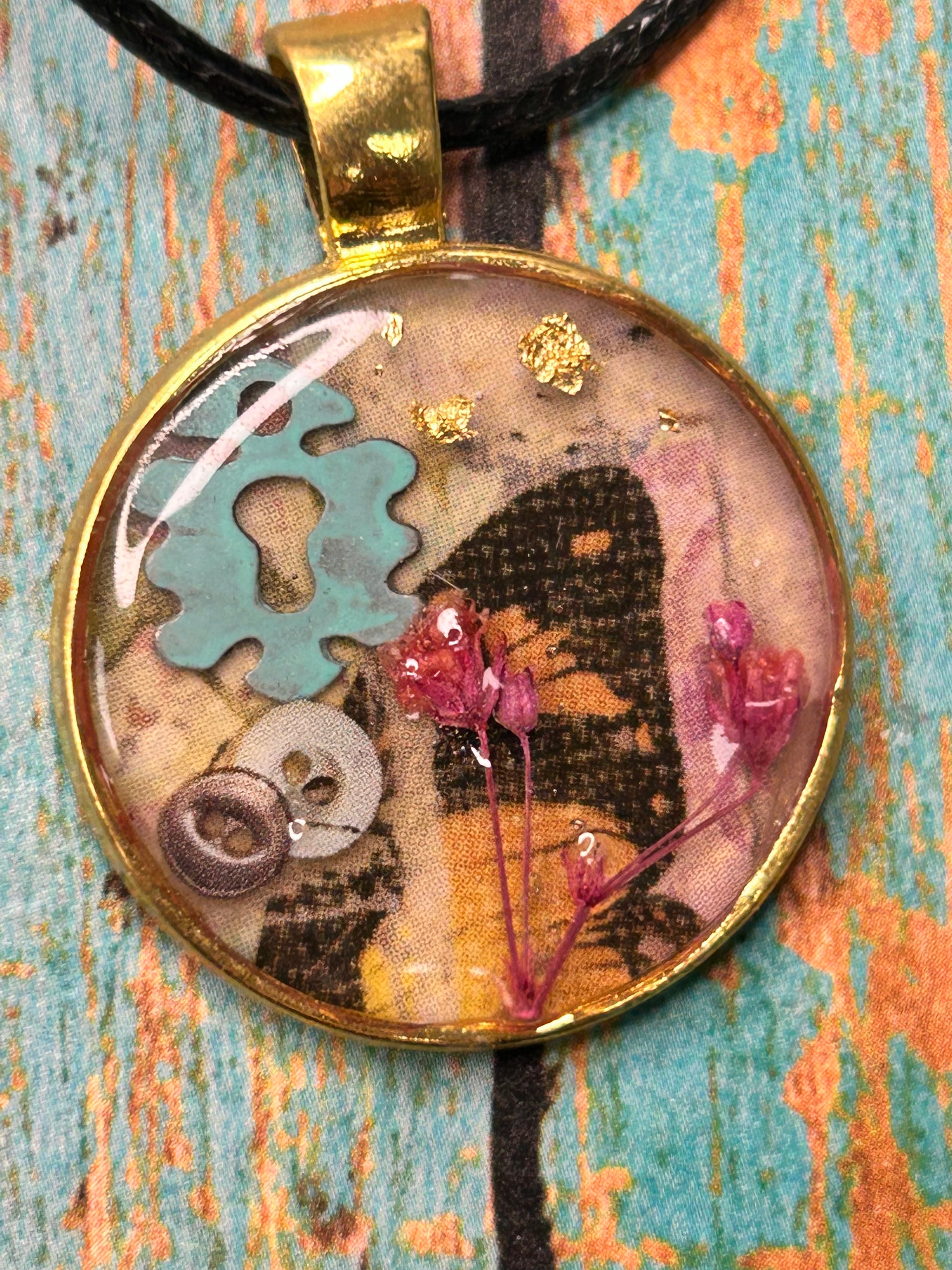 Enchant your look with the Secret Garden pendant! This found-object piece is inspired by secret gardens everywhere and is sure to be a conversation-sparker.