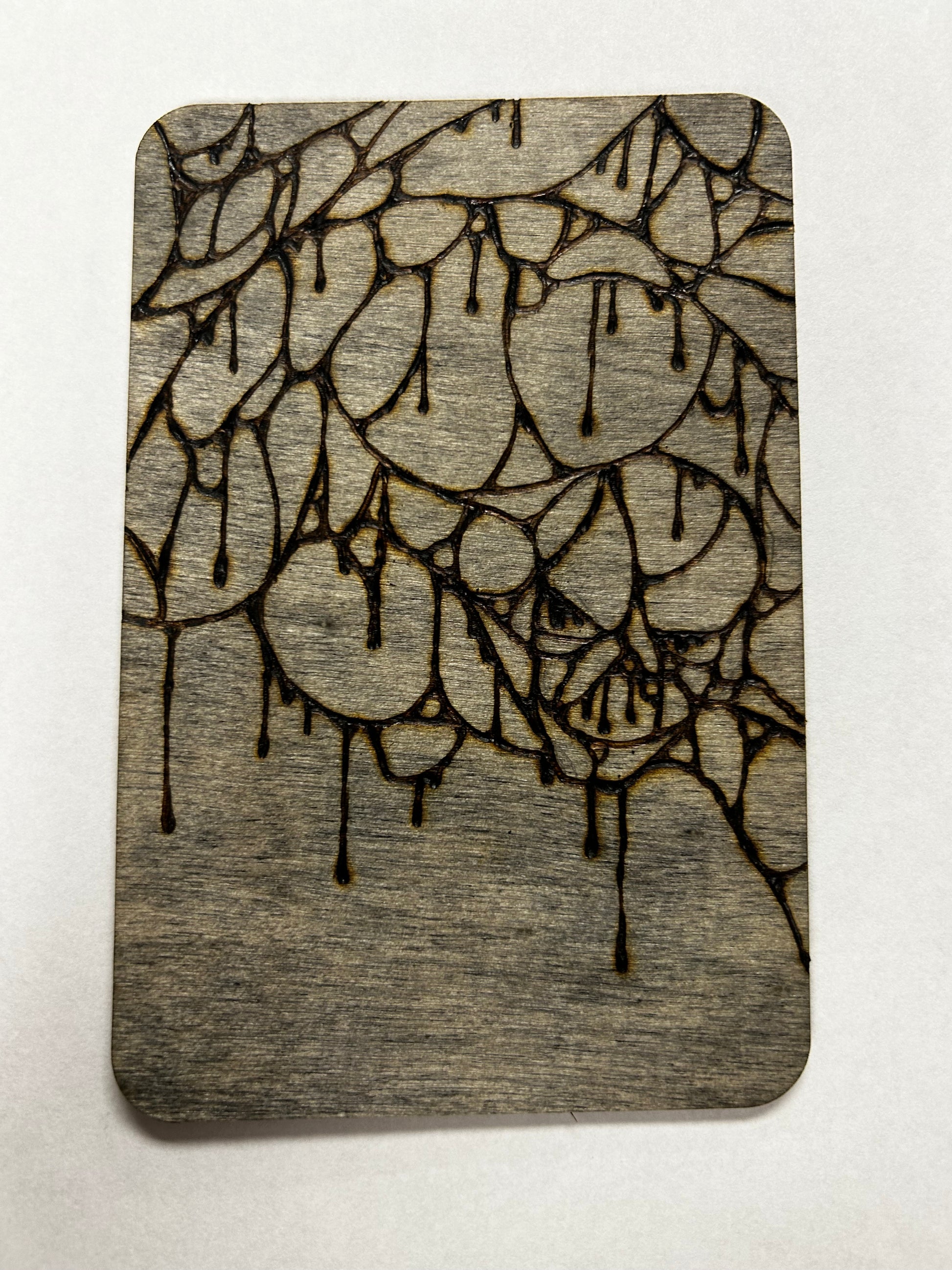 Weave a twisted tale of craft and whimsy with Toxic Love! Get hexed with this hand-crafted wood burn featuring a unique, Hexus-inspired design.